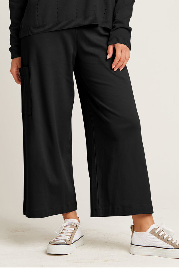 Pleated Scuba Crepe Wide-Leg Pants Black