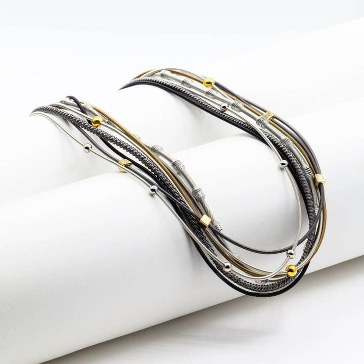 Multi Jasper Two Strand Woven Necklace On Bronze Linen and Leather