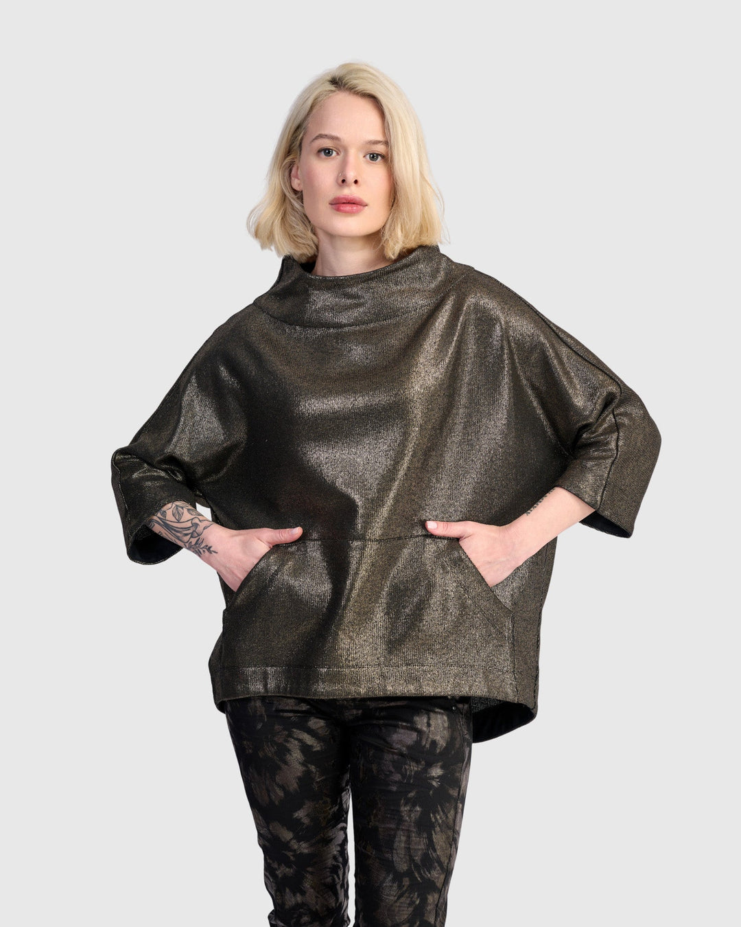 Satin Abstract Print Boxy Tunic with Cowl Collar