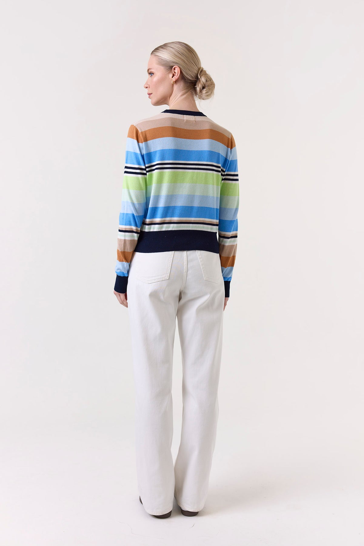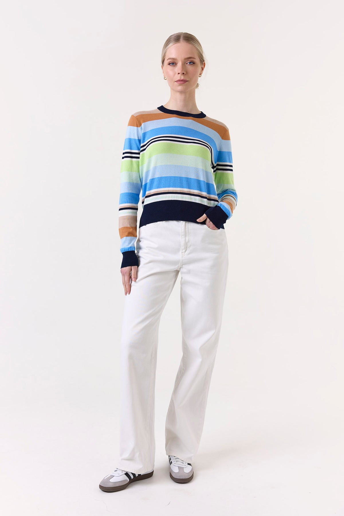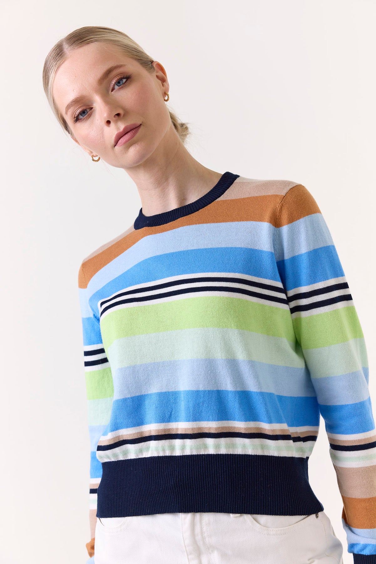 Add a splash of classic charm to your casual wardrobe with the Ivy Strip Crew in Navy. This cozy crewneck features subtle striping that keeps things interesting without stealing the spotlight. Perfect for layering or wearing solo, it’s your go-to for effortless style and comfort that keeps up with your playful spirit.