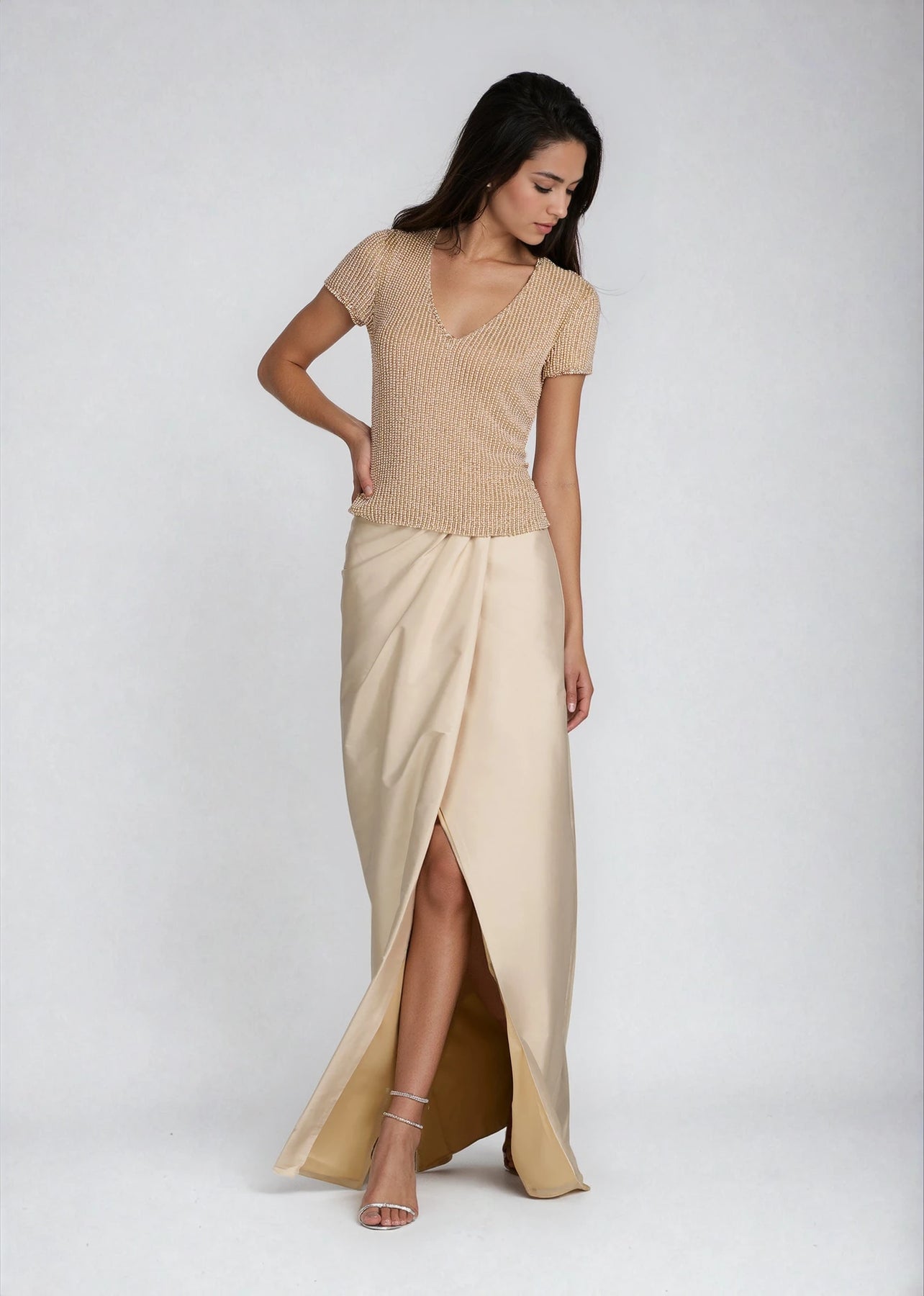 SOFT TAFFETA FAUX WRAP SKIRT CHAMPAGNE