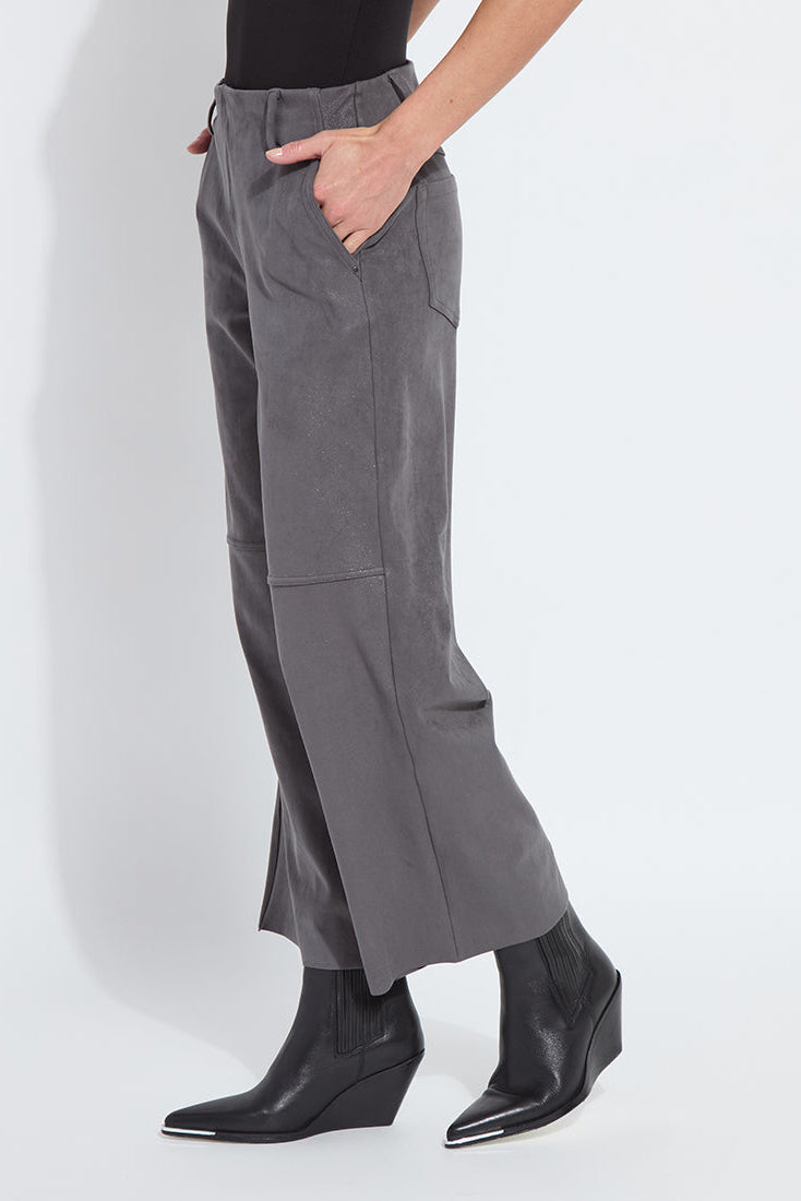Step into style with the Amina Foil Vegan Suede Pant in Gray! These playful pants bring a shiny twist to classic vegan suede, making every move sparkle. Comfortable and cruelty-free, they’re perfect for adding fun flair to your everyday outfits or dazzling at night. Who said comfy can't be chic?