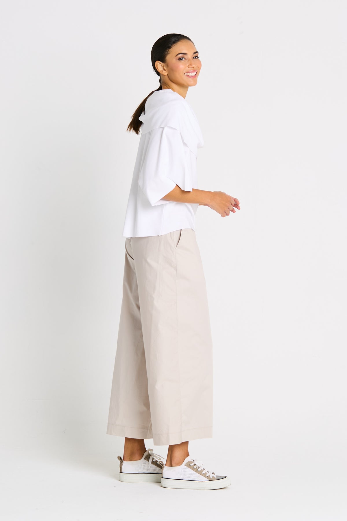 Effortlessly chic and undeniably comfy, these wide-leg cropped pants in soft putty beige are your new wardrobe staple. The relaxed silhouette skims past your ankles while the neutral tone pairs with literally everything in your closet. Perfect for dressing up or down.