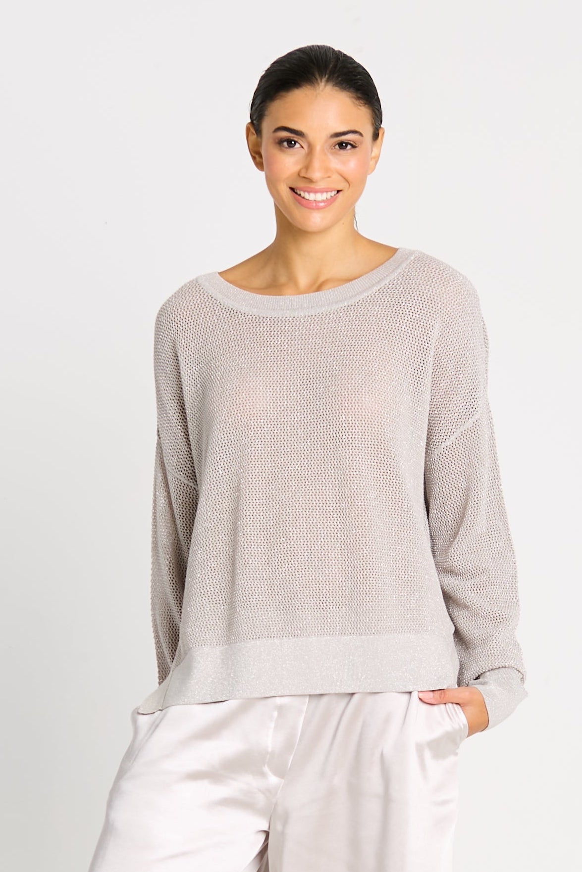 Metallic Mini Seed Stitch Sweater Putty