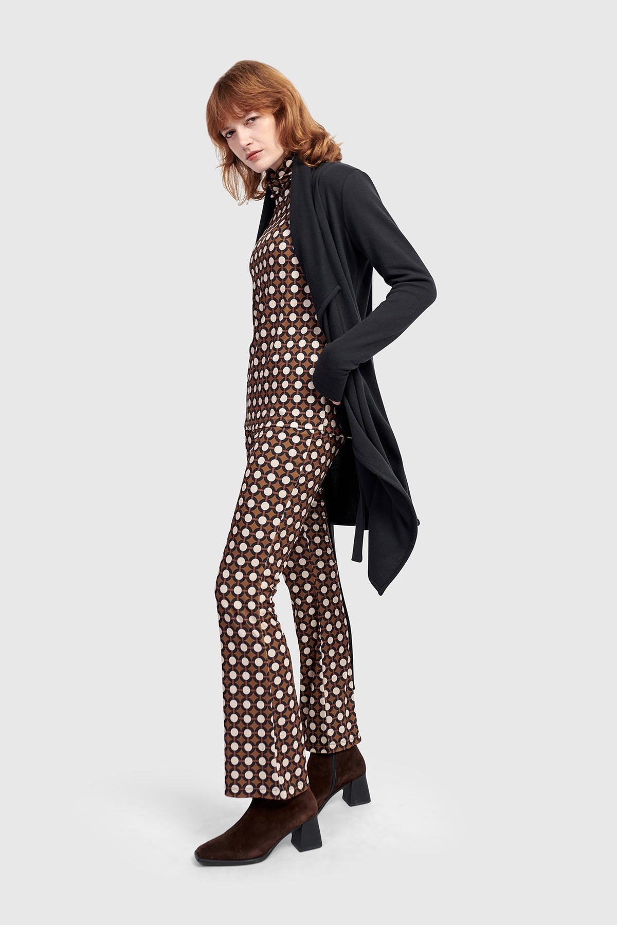 Sleek through the leg with a kick flare hem, these pants are made from printed slinky knit for a polished yet comfortable fit. High-rise waist with all-around elastic keeps them effortless, perfect for pairing with tunics or tailored tops.