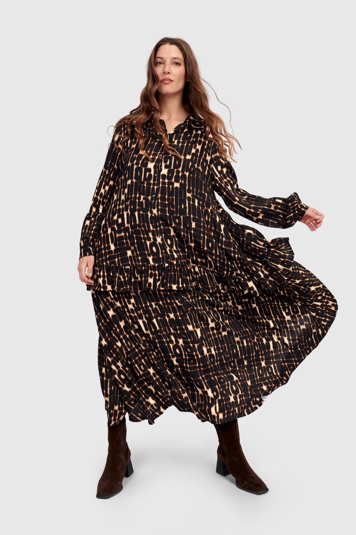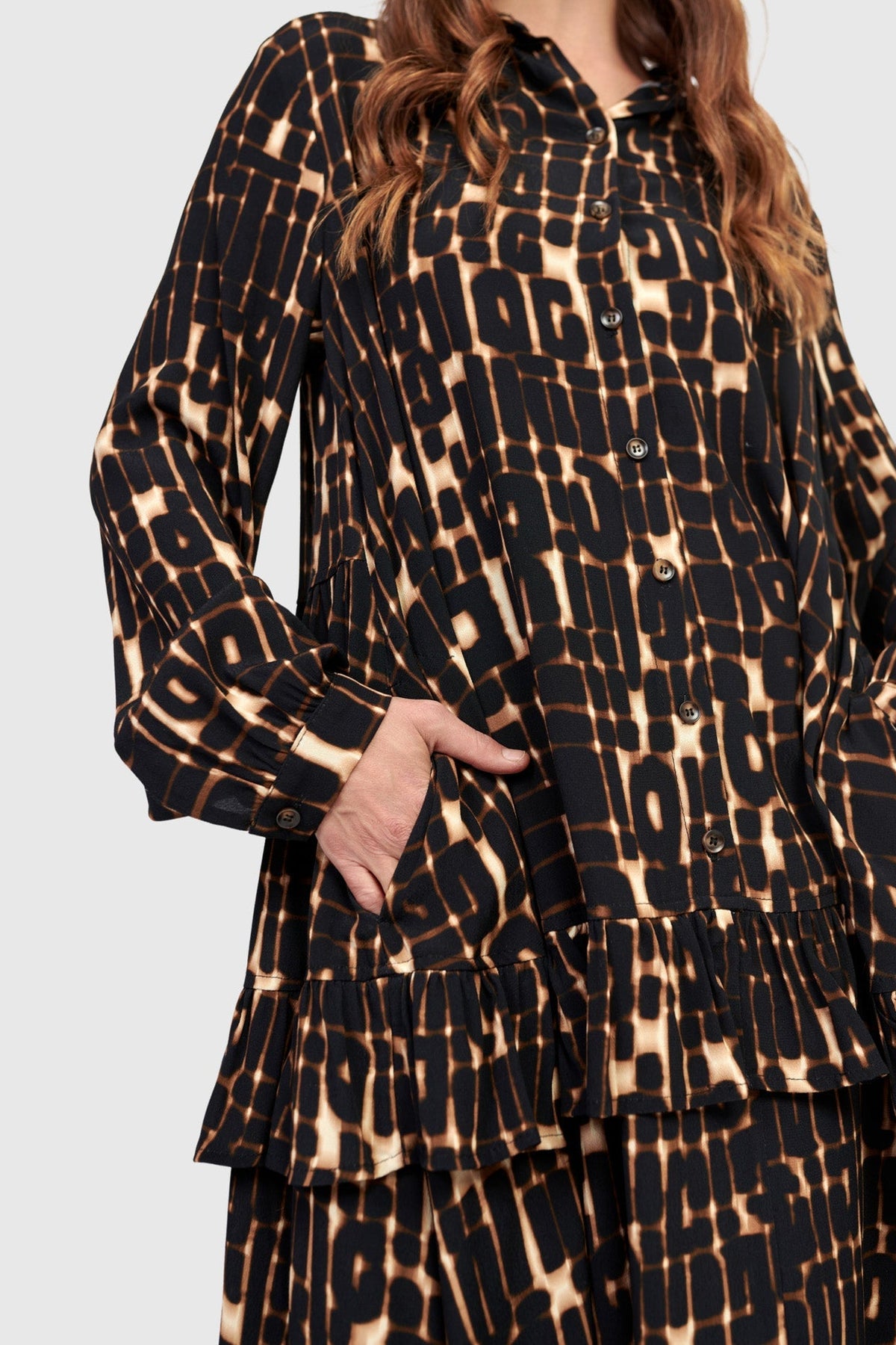 Draping beautifully in a crepe-textured woven, the Tessera Maxi Dress merges tailored polish with easy movement. Its drop waist and flowing A-line silhouette create subtle structure, while set-in sleeves and a classic collar elevate the look. A partial placket and side pockets add functional appeal. Wear it layered or solo - this maxi silhouette transitions seamlessly from season to season.