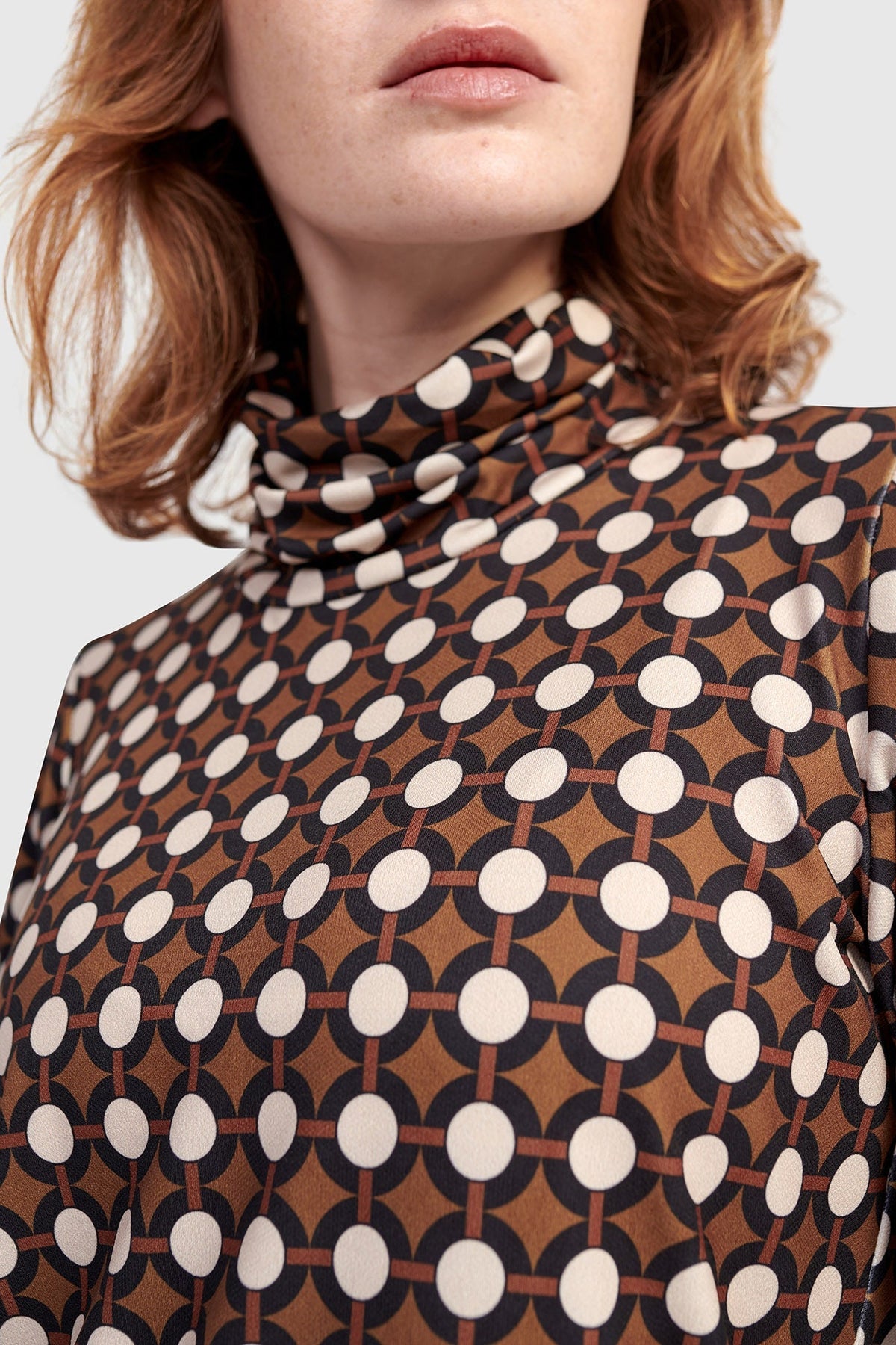 This lightweight turtleneck top features a slim fit and graphic Groove print that adds dimension. With stretch for comfort and a polished shape, it layers easily or stands alone with bold simplicity.