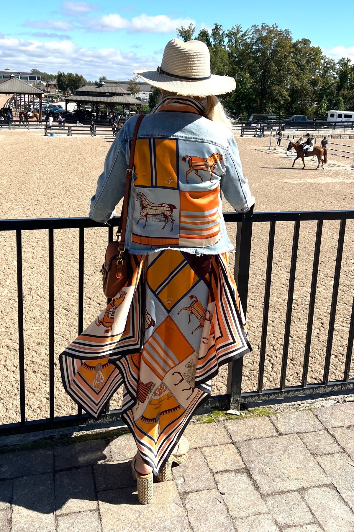 Silk Dress / Light Blue & Orange Horse