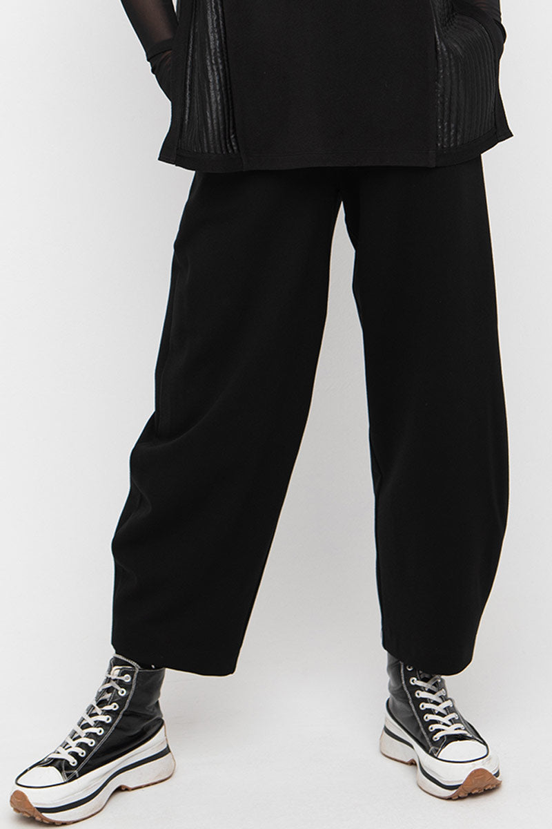 These black pull-on ankle pants combine comfort and sophistication with a sleek, tailored fit. Designed for easy wear and a polished look, they offer a versatile foundation for both professional and casual ensembles. Their streamlined silhouette ensures effortless elegance from day to night.