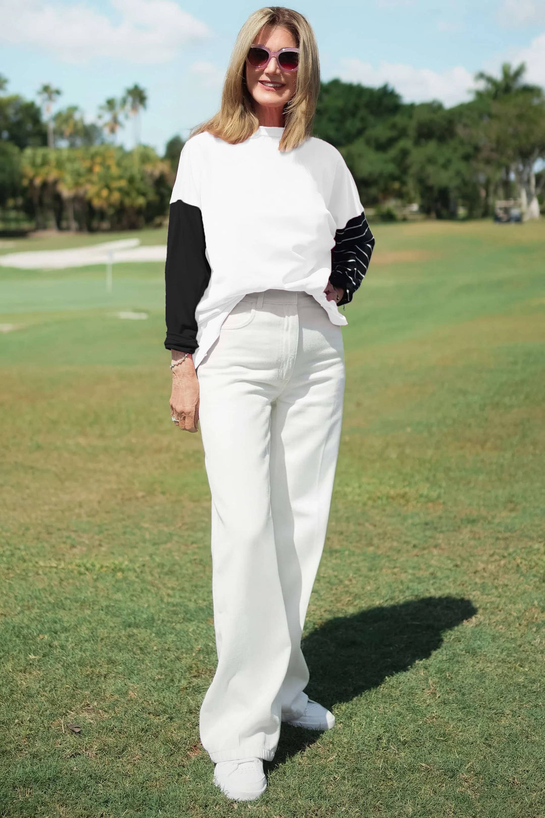 This fan-favorite boxy tee gets a bold refresh with unexpected colorblocking on every sleeve. Crafted in breathable Pima cotton with a relaxed drape and signature swing, it’s designed to make styling feel easy—whether layered up or worn solo. Chic, easy, and delightfully offbeat.