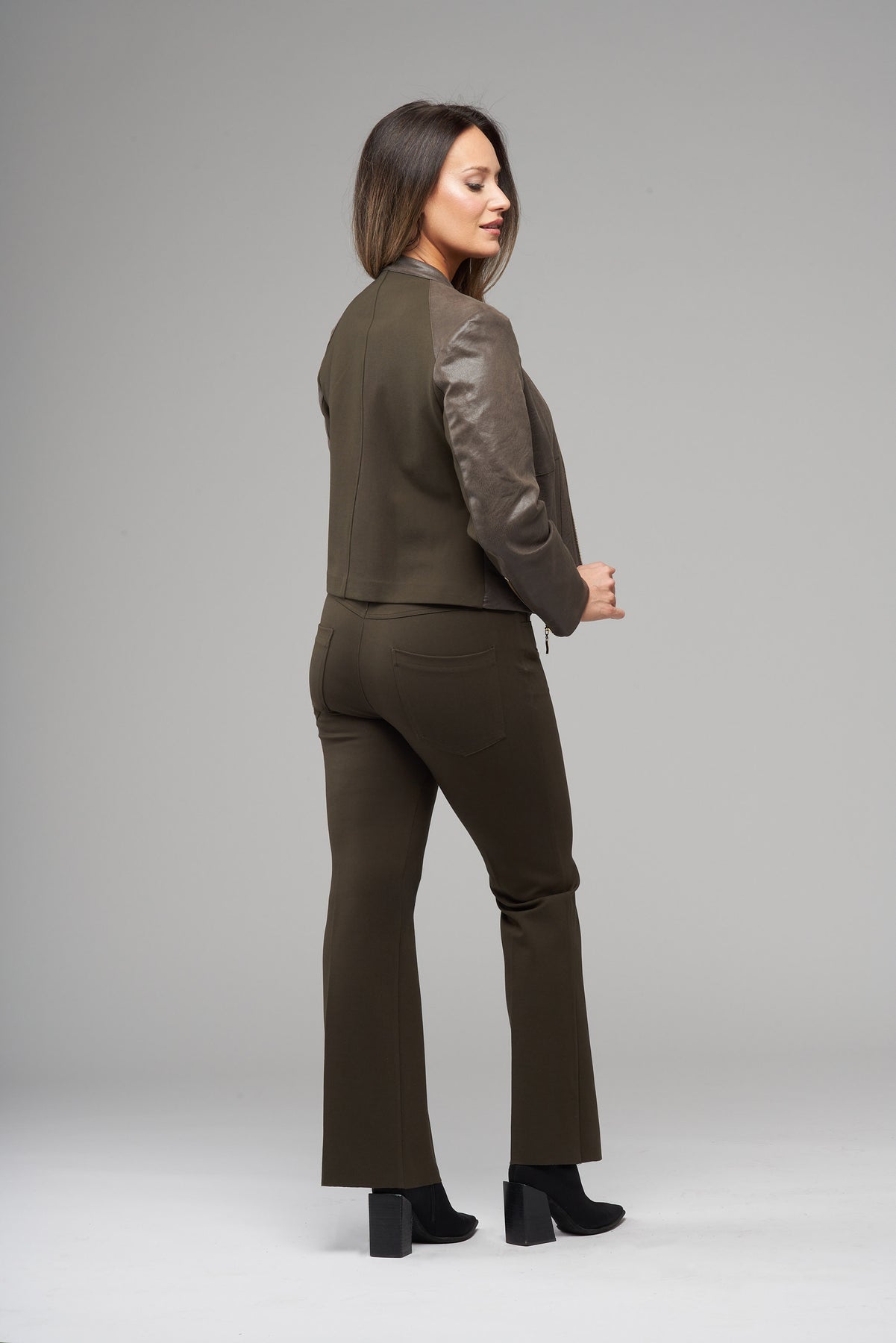 Step up your style game with this Vegan Leather and Scuba Combo Jacket in Olive. Crafted for fun and flair, it blends sleek vegan leather with cozy scuba fabric, giving you all the cool vibes without the guilt. Perfect for days when you want to look edgy yet comfortable, this jacket adds a pop of olive that’s anything but ordinary. Whether you're out on the town or cozying up by the fire, this jacket’s got your back—literally!