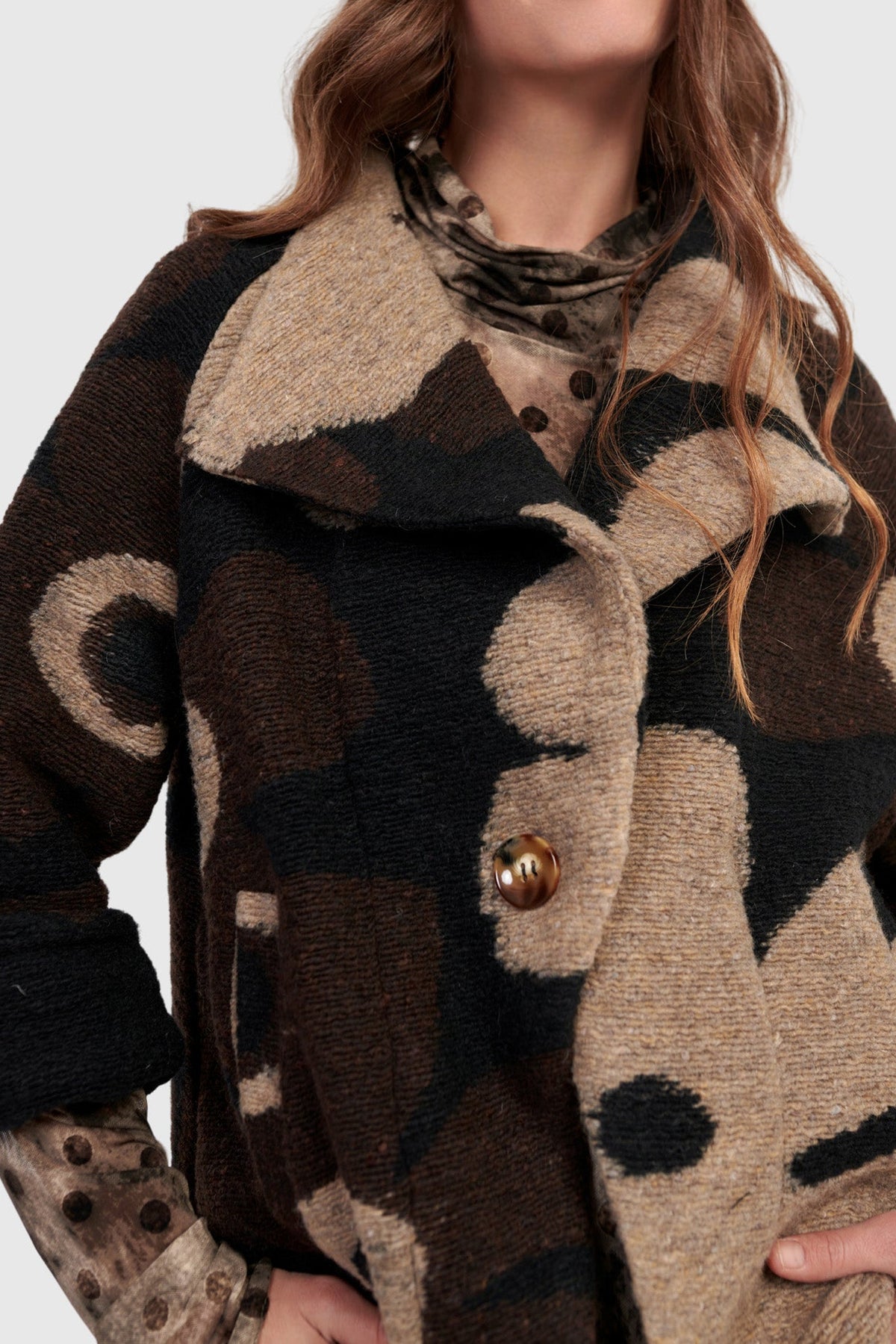 A cropped companion for cooler days, the Boogie Jacket delivers bold structure with a boxy A-line shape and oversized lapels. The cozy brushed knit drapes softly while maintaining its shape, and the cropped cut makes it ideal for layering over tunics or dresses. Floral patterning brings a playful edge to the clean construction.