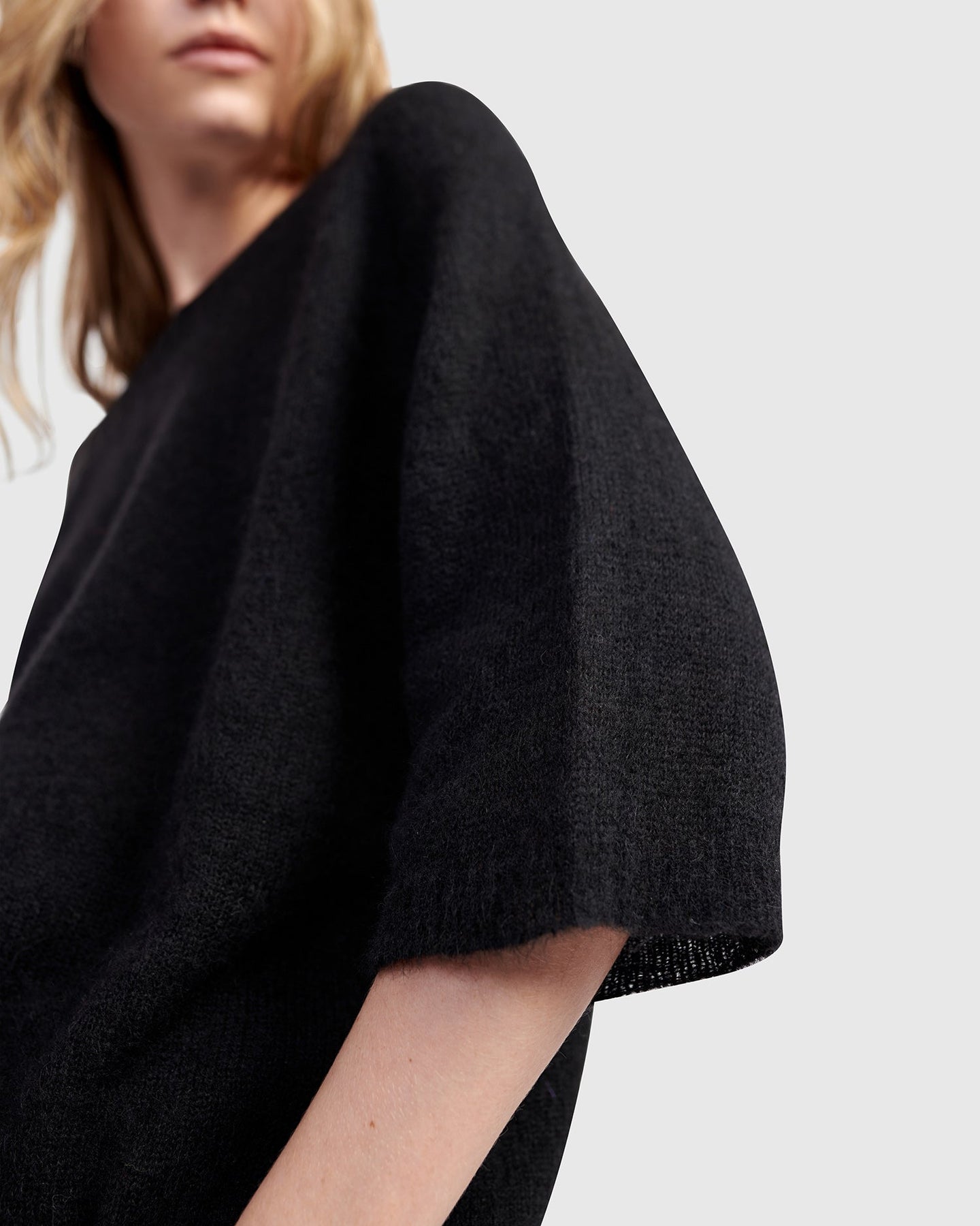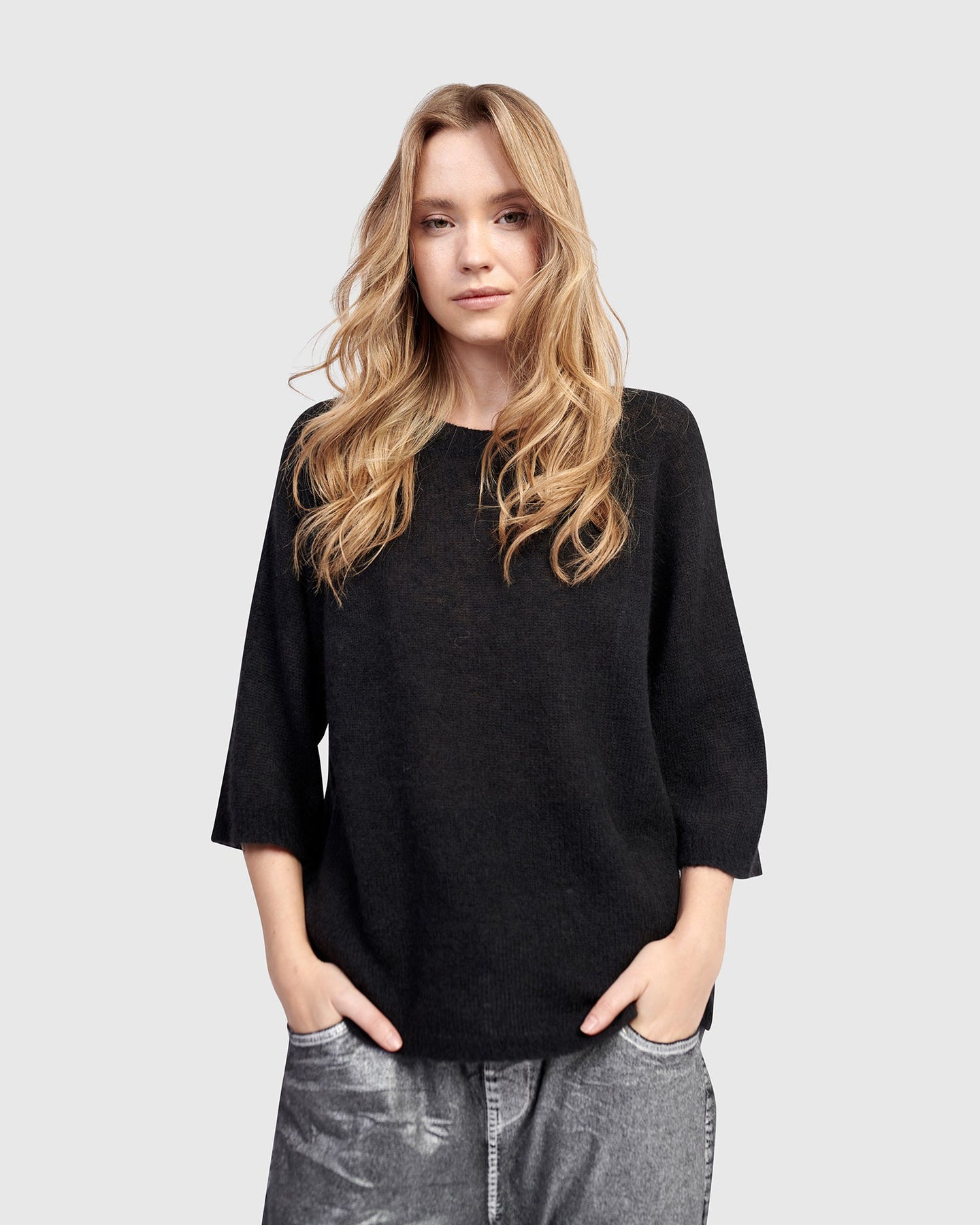 Rendered classic black, this core pullover sweater delivers airy warmth in a cropped, boxy silhouette. The featherlight alpaca blend brings a luxe touch to everyday layering with elbow-length ease.