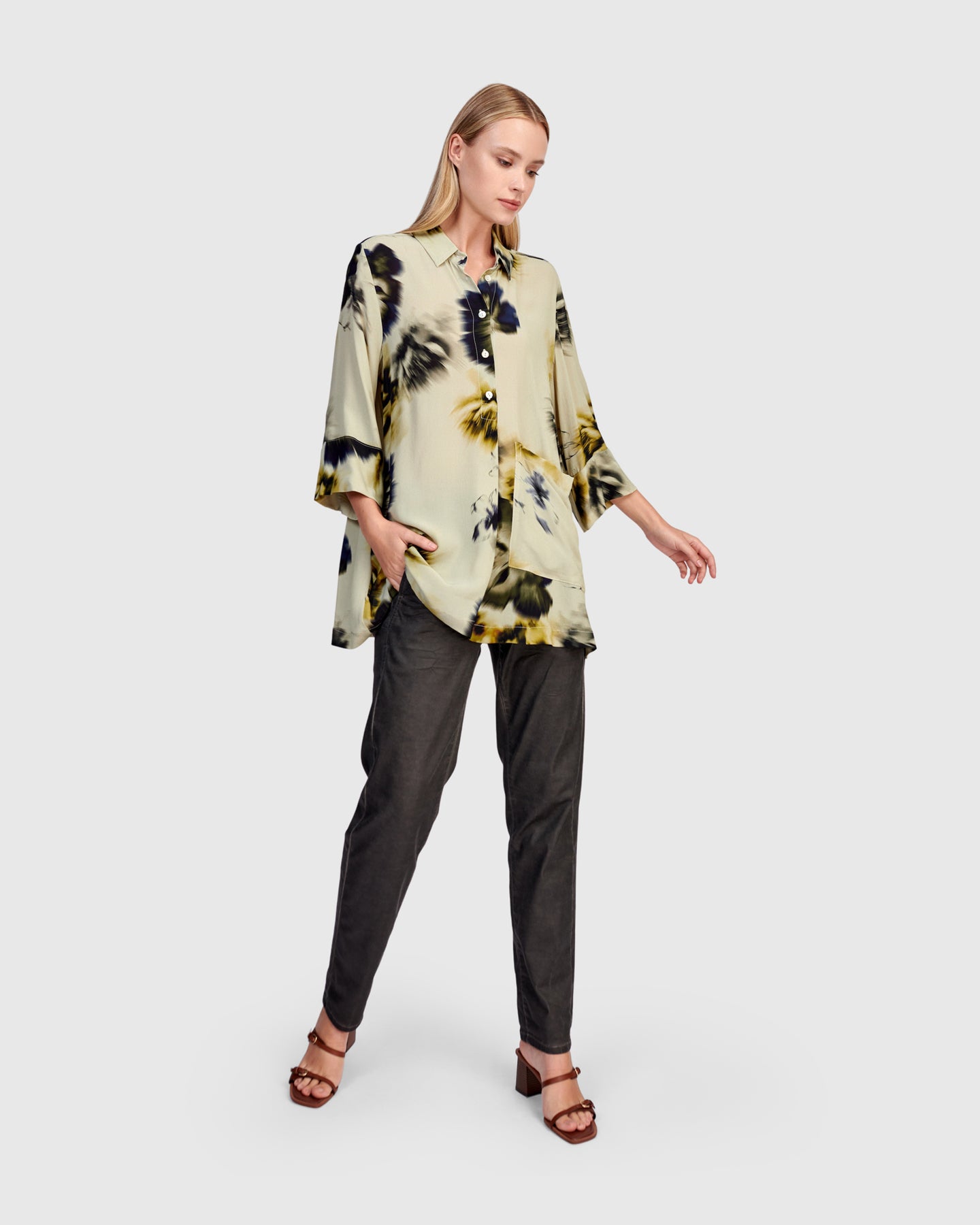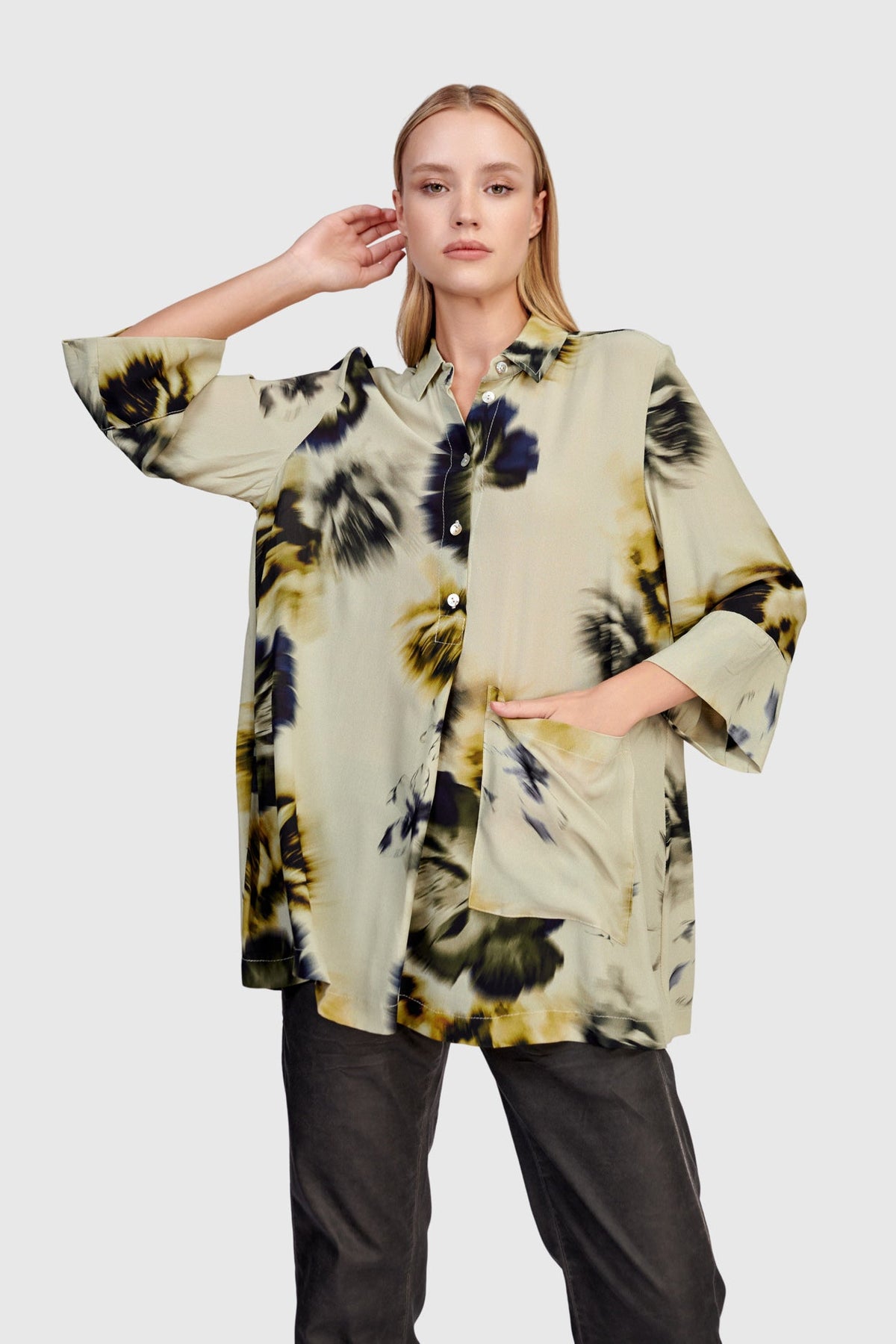 Your new go-to shirt is here! This relaxed button-front beauty combines comfort with functionality, featuring handy patch pockets to stash your stuff. The cheerful floral design brings personality to any casual outfit—whether you're running errands or hanging with friends. Slip it on and embrace the easy-breezy vibes.