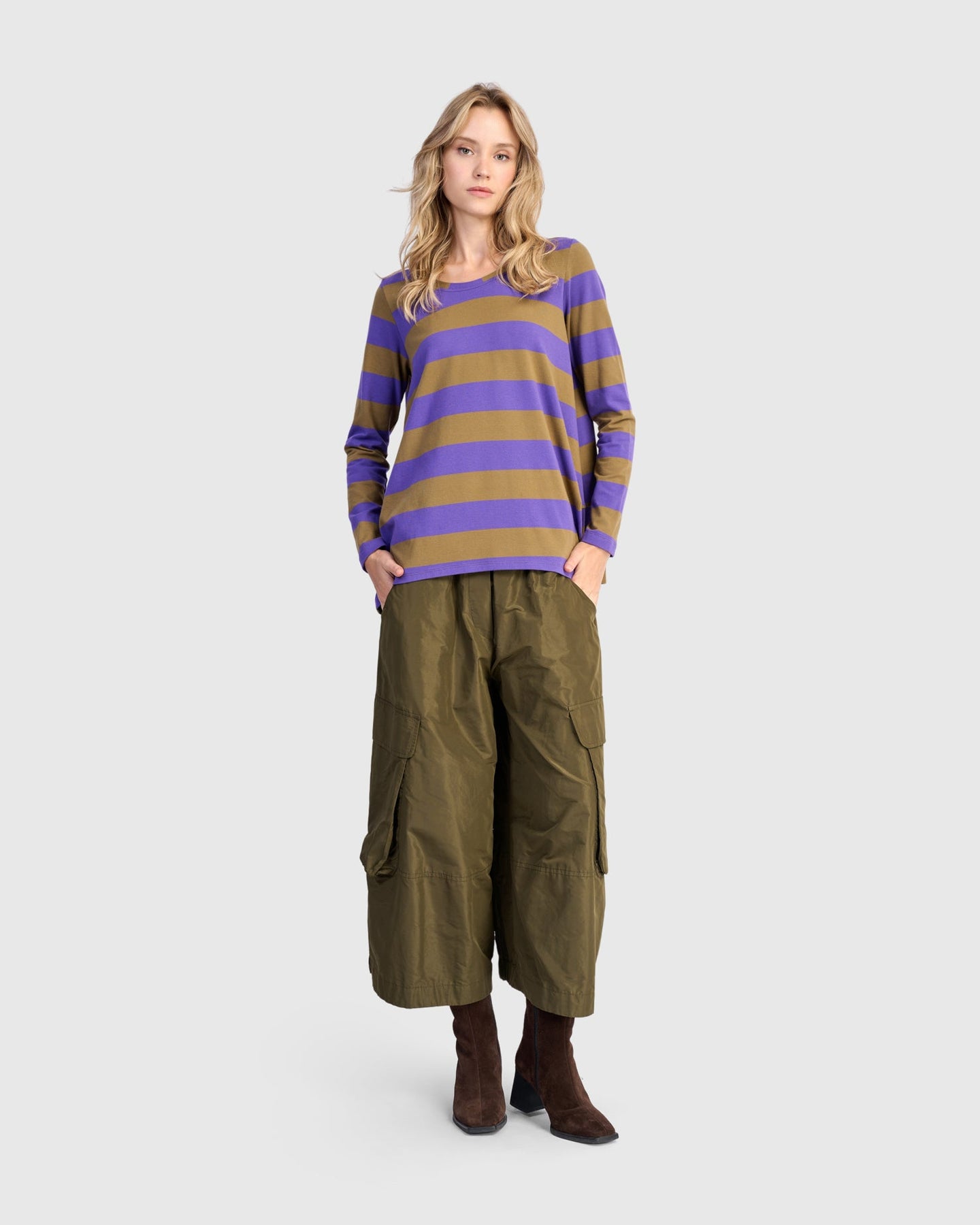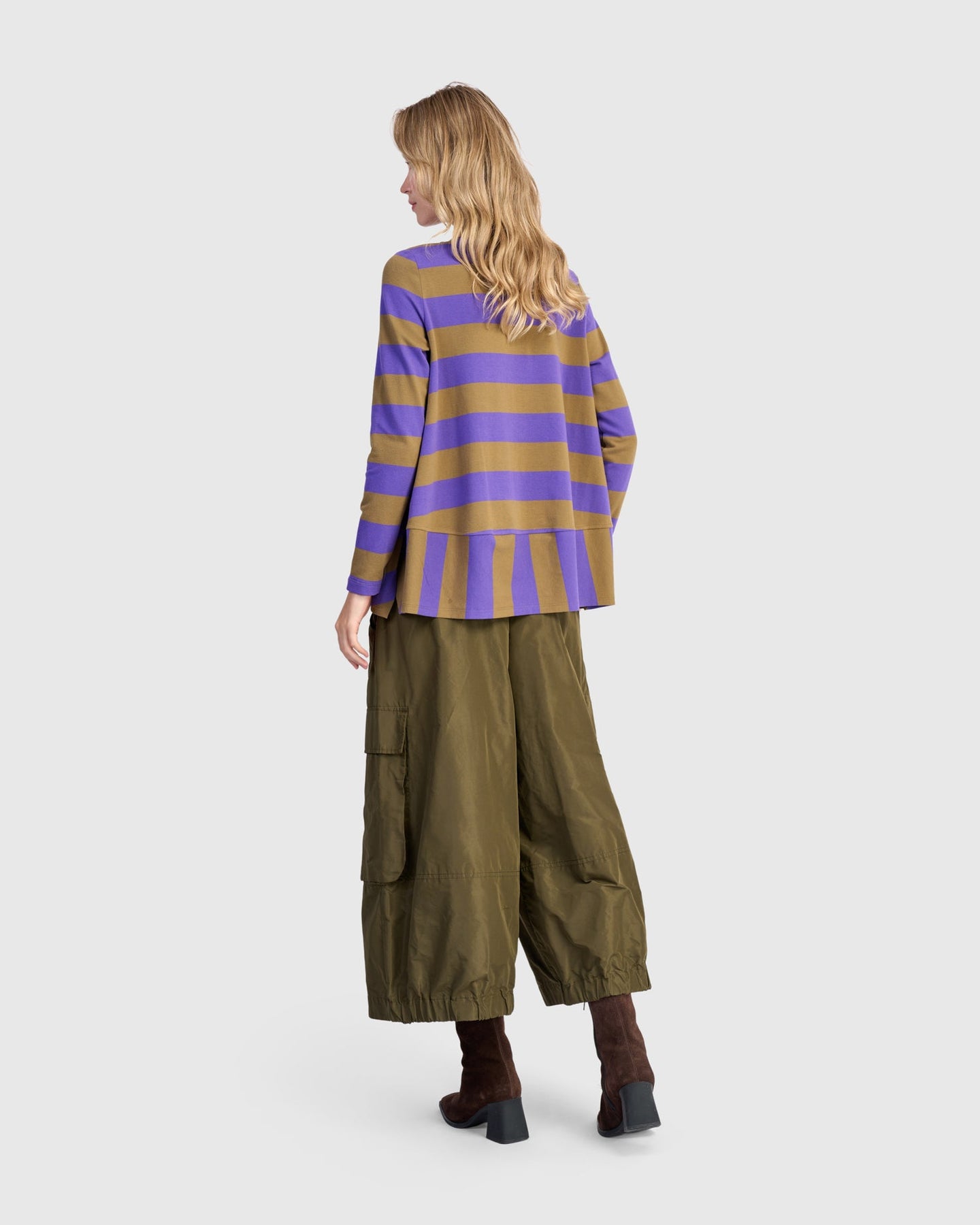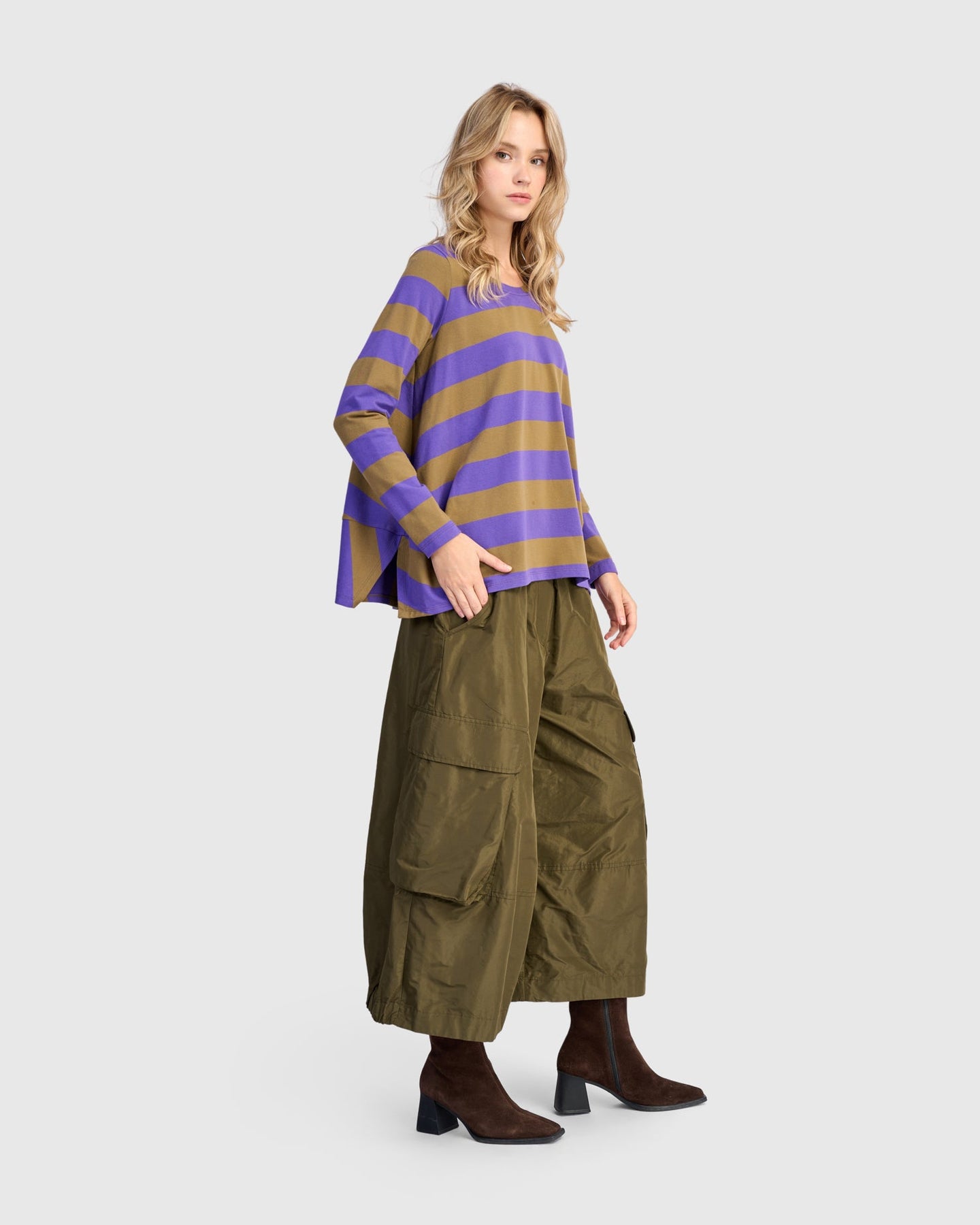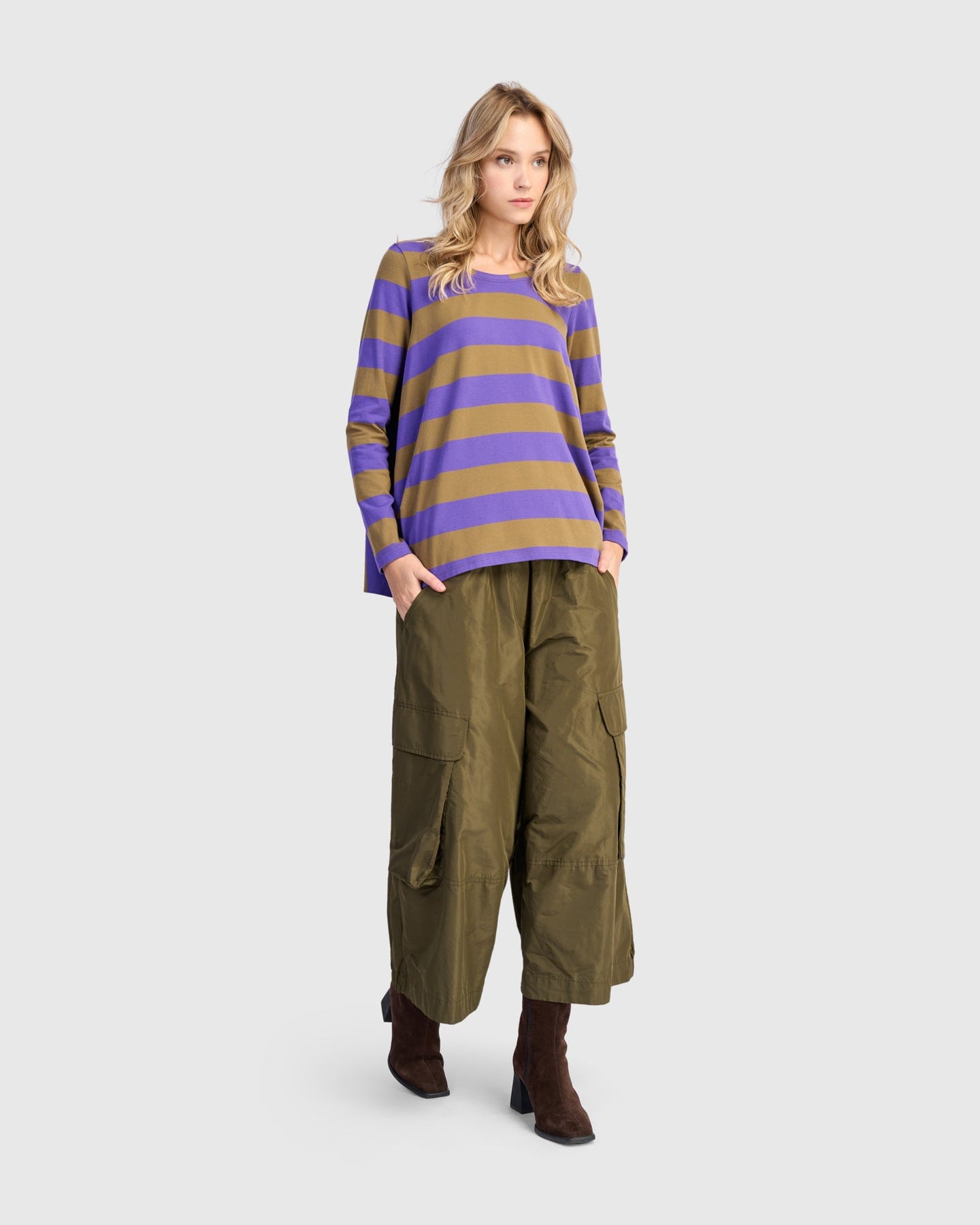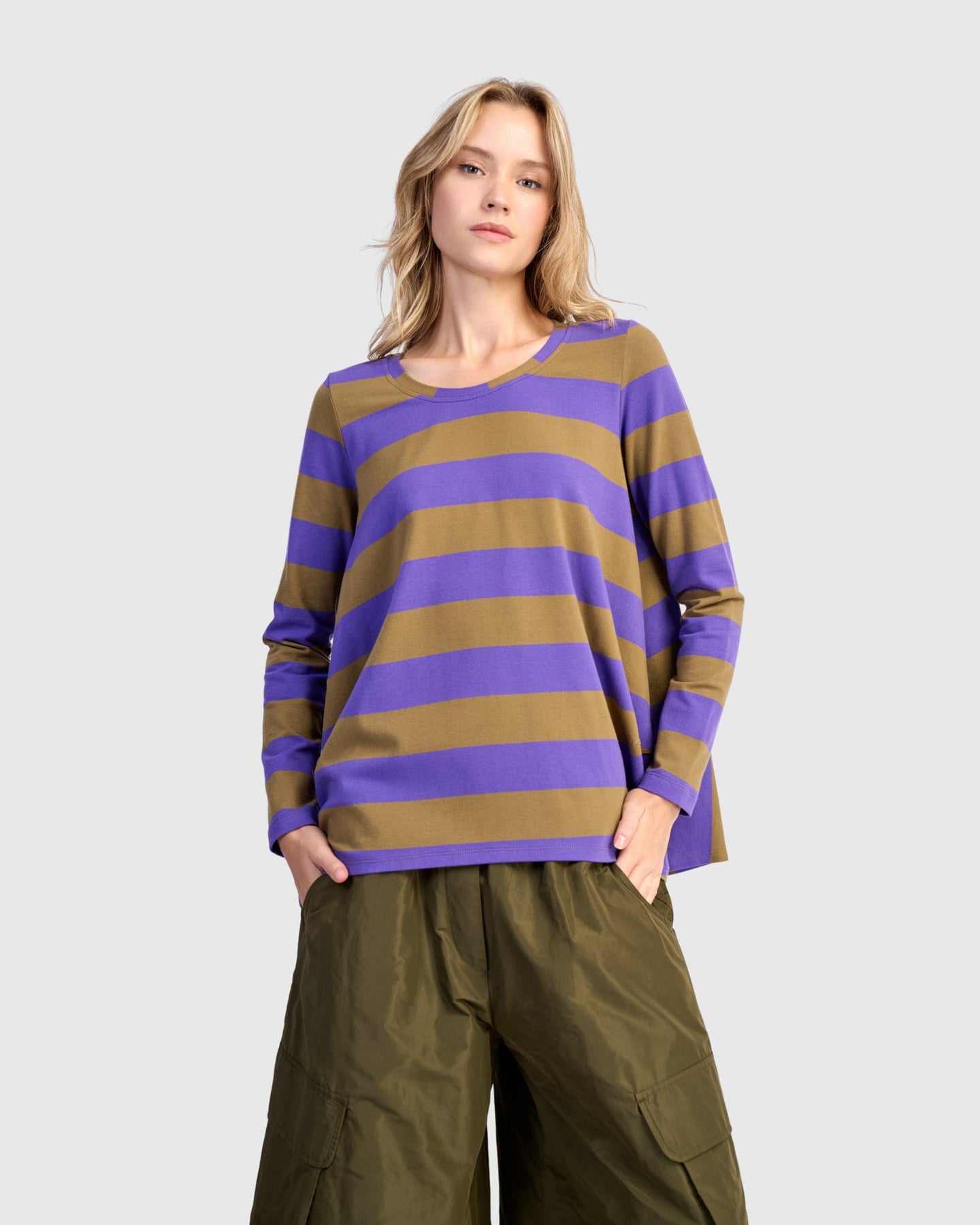 This swingy tee features a boxy silhouette that tapers softly from bust to hem. Cut from substantial cotton jersey with stretch, it's detailed with side slits and shaping seams for easy movement. A versatile layering piece in rich purple.