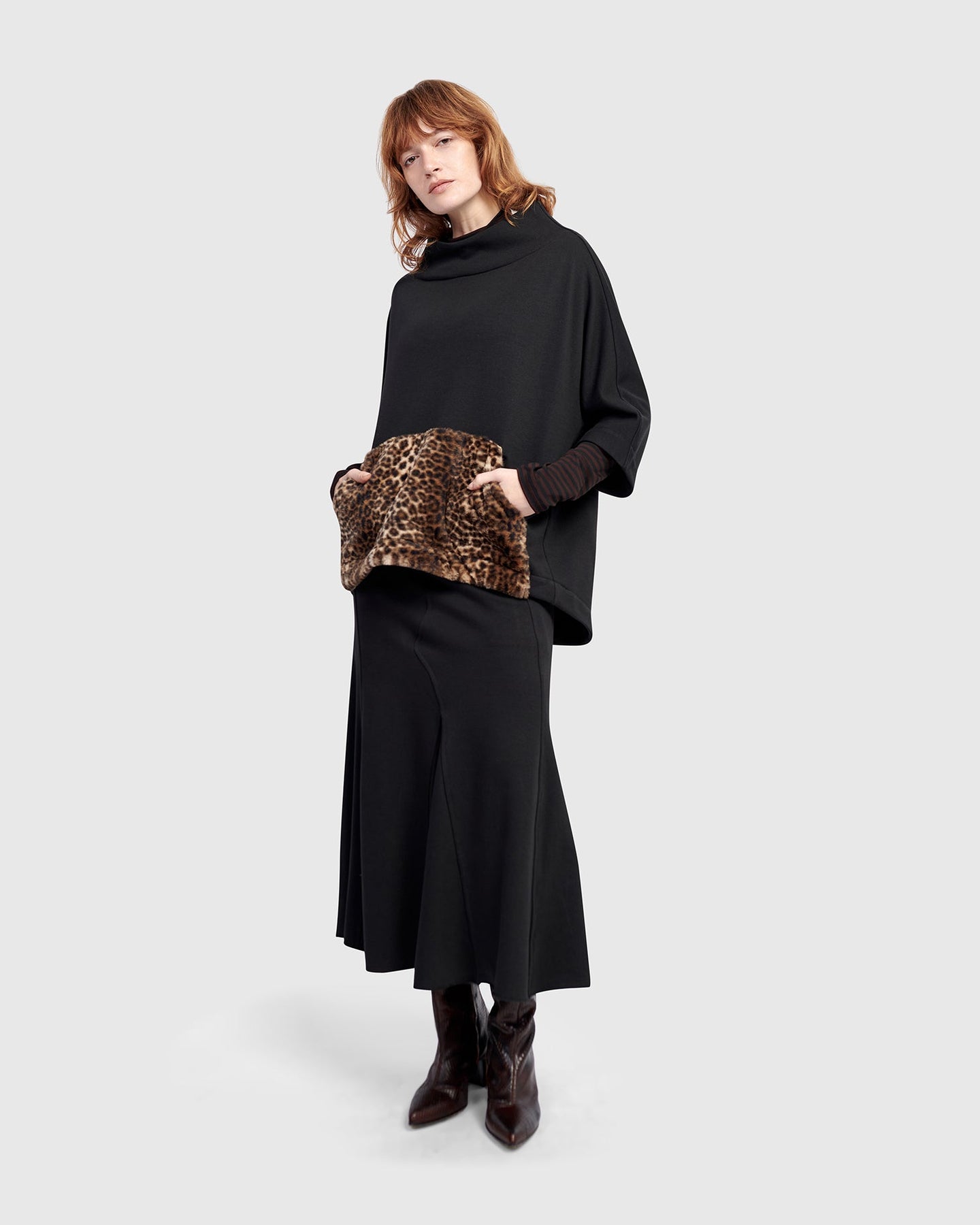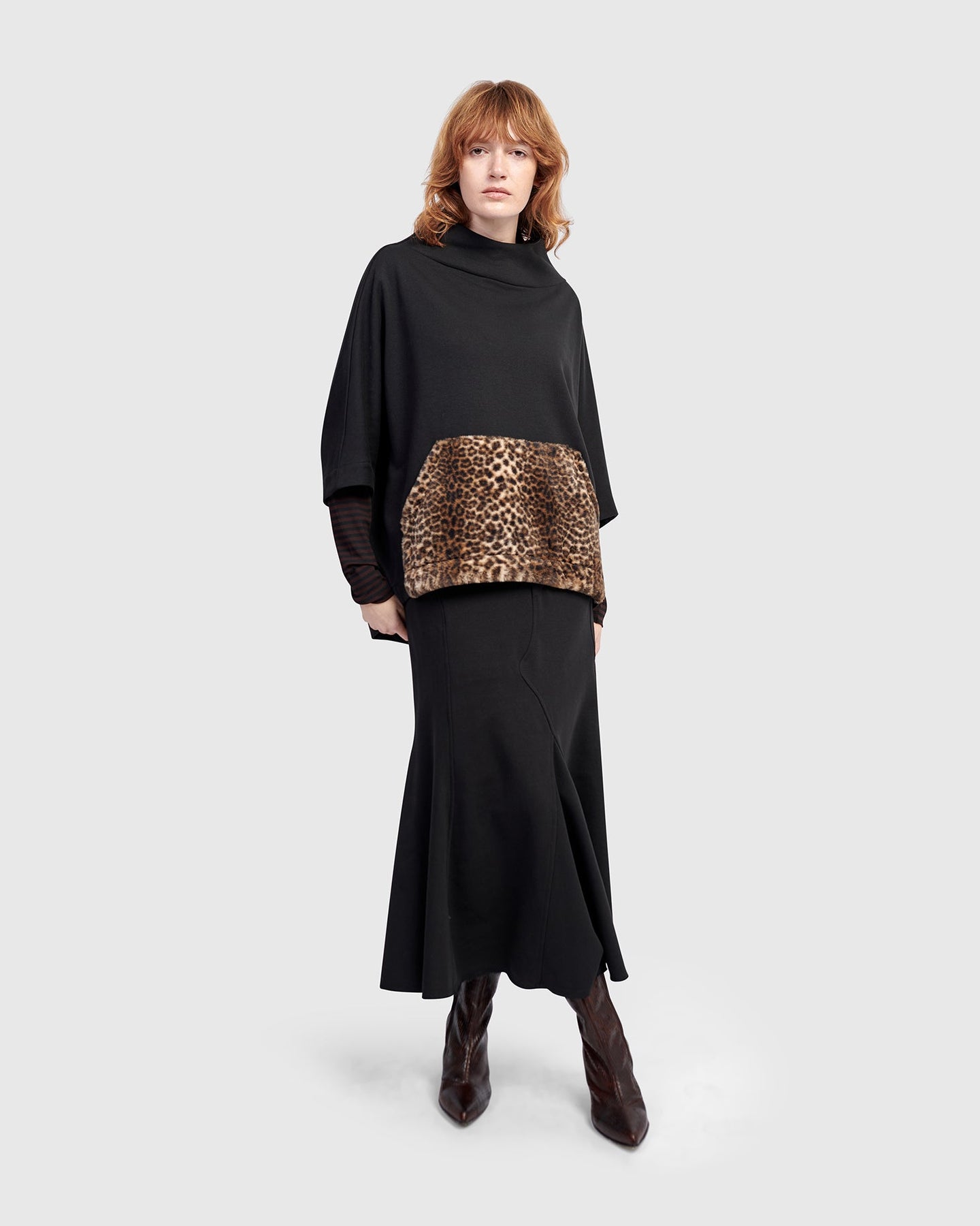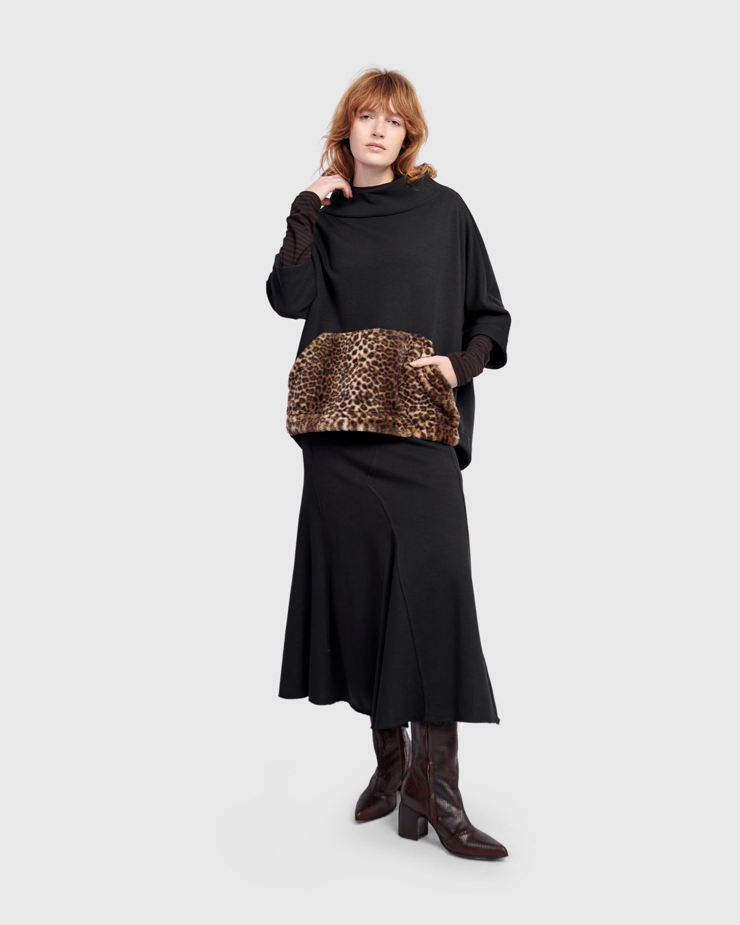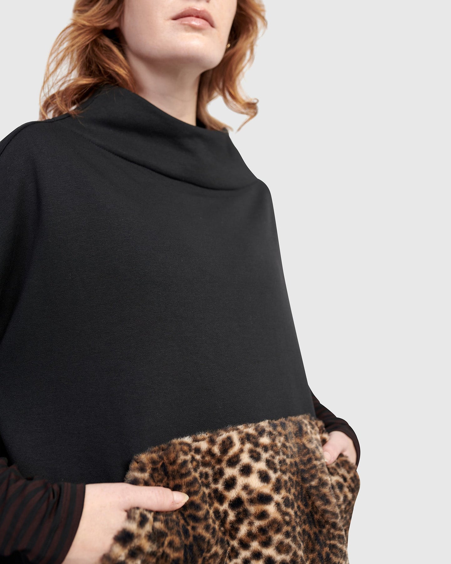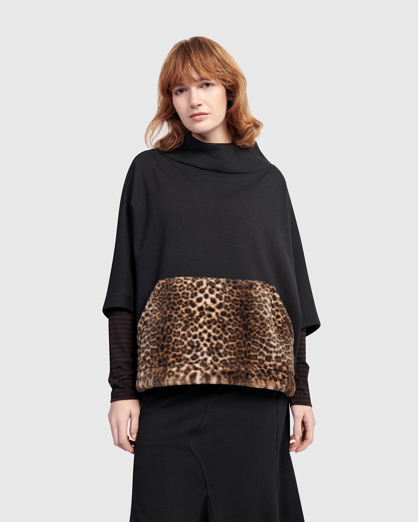 Part pullover, part cozy cocoon, this funnel neck top features soft French terry with a faux fur twist. Rounded at the hem and relaxed through the body, it's built for layering and lounging alike.