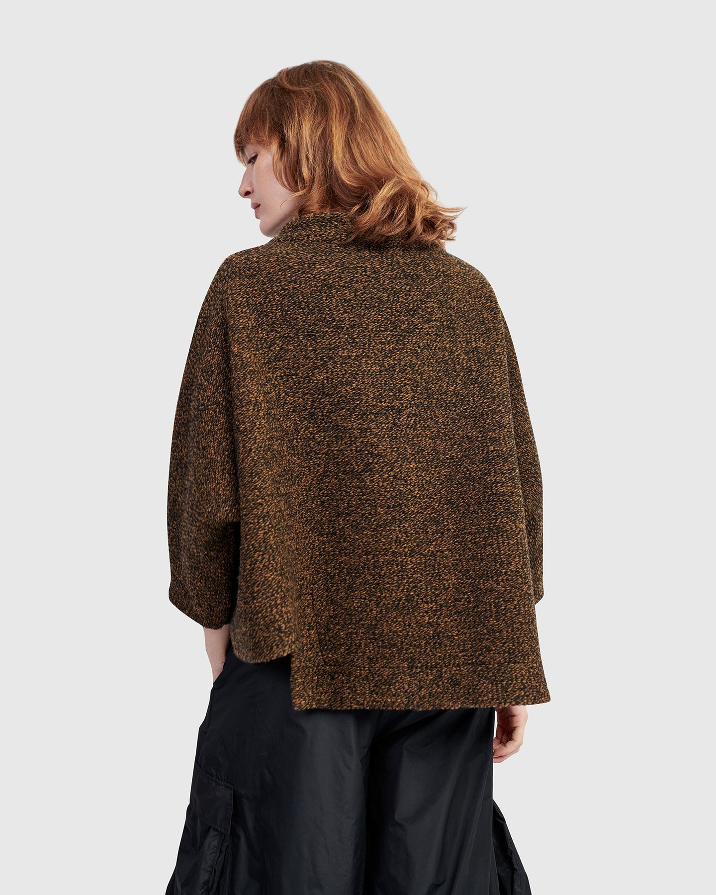 This quilted pullover is a statement layer with directional structure. The asymmetrical hem and funnel neck lend a sculptural silhouette, while the soft quilted knit provides cozy comfort. Designed with a front pocket and versatile length, it pairs well over fitted layers or under outerwear for dimensional dressing.