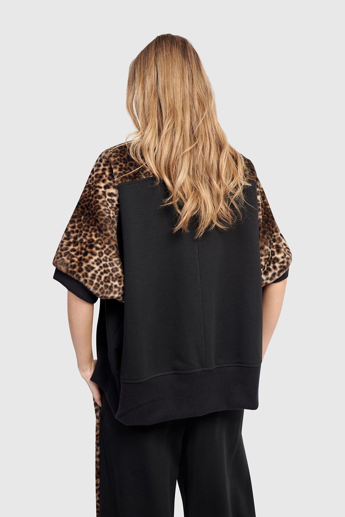The Shroud Top pairs leopard print with cozy faux fur sleeves in a boxy, oversized shape. Ribbed edges offer a sporty finish, bringing texture and personality to relaxed, everyday dressing.