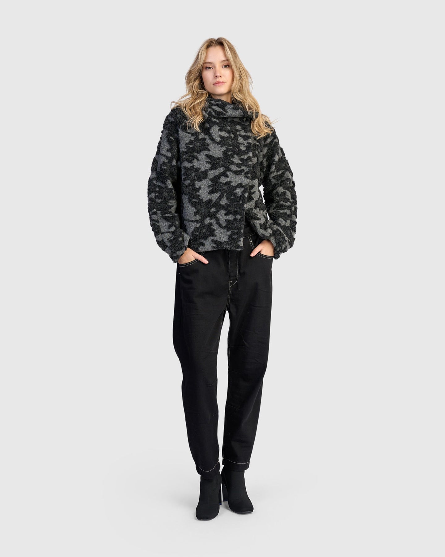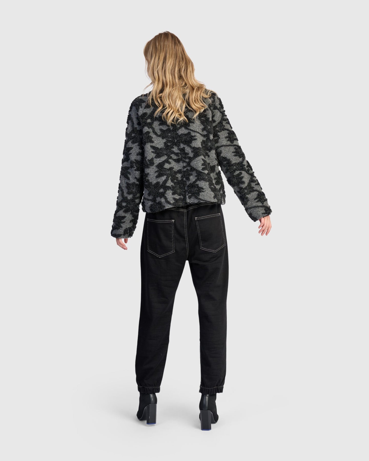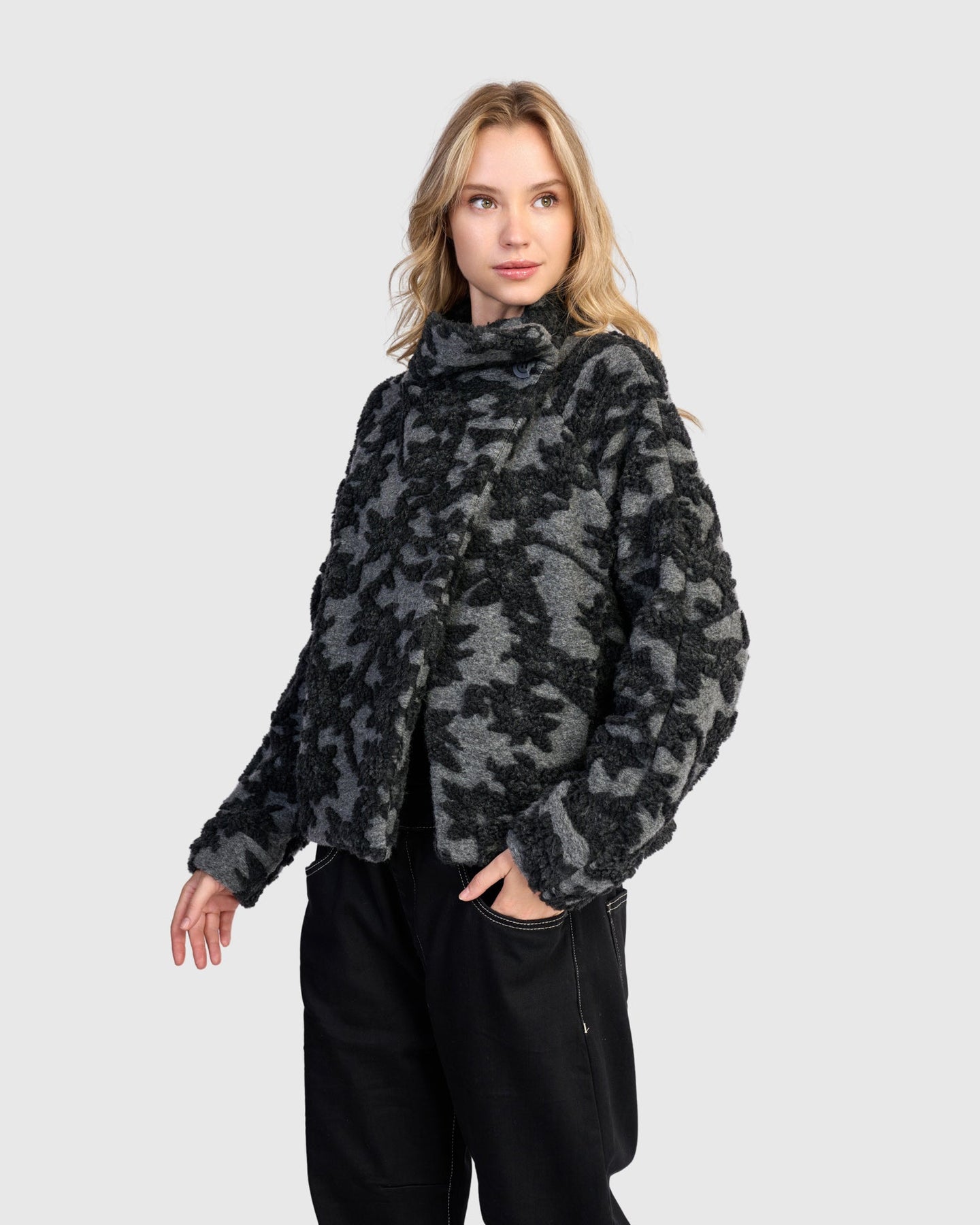 The Vesper Jacket brings moto inspiration into soft, cozy territory. Designed in a heathered knit with brushed texture, it features a foldover collar and clean boxy cut that hits at the hip. Lightweight yet warm, ideal for layering or solo wear.