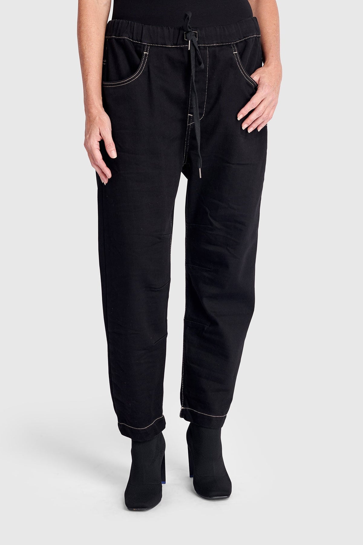 Rendered in classic black, these Weekend Boyfriend Jogger Jeans combine everyday functionality with refined detail. A relaxed, drop-crotch silhouette tapers into a slim jogger leg for a flattering line, while the soft stretch denim and elastic details ensure ease from waist to cuff. Minimal yet versatile, they're a reliable favorite in any rotation.